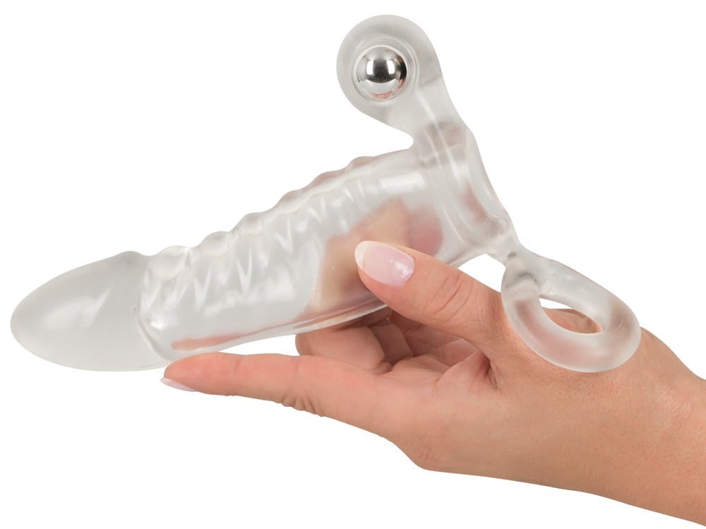 Denna genomskinliga Vibrating Sleeve från Crystal Clear av mjukt stretchmaterial får penisen i toppform för utfyllande njutningar. Den tajta hylsan träs bara över den erigerade lemmen. Pungringen gör att den sitter bra utan att halka av. Tack vare materialets tjocklek och den utpräglade strukturen blir penisens omfång större och det fast formade ollonet gör penisen längre. Det lilla, kraftfulla vibroenheten sätts in i övre öglan och ger spännande stimulationer. Inklusive batterier (3 x LR44) för vibroenheten.