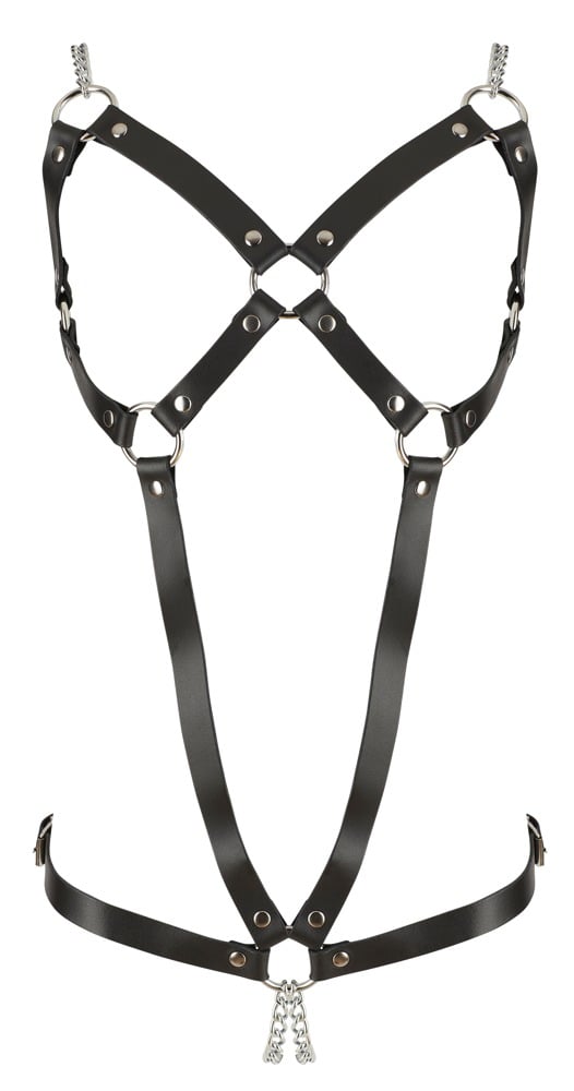 Läder body med kedjor som ligger skönt mellan blygdläpparna. Justerbara remmar på höft och rygg för perfekt passform efter just din kropp.