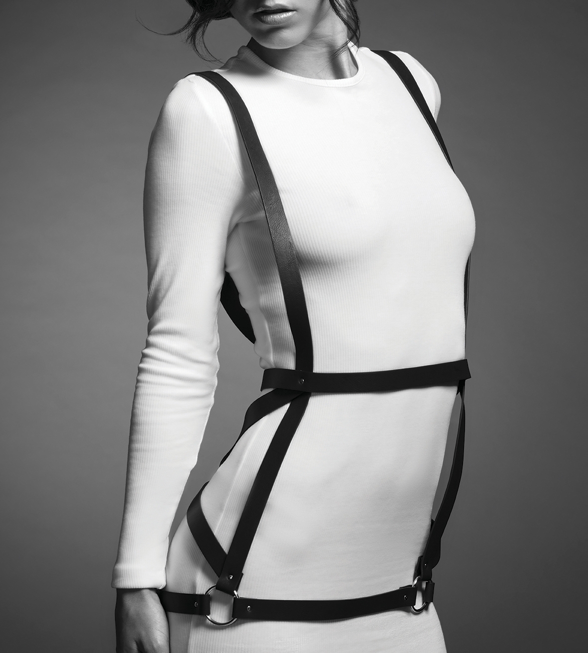 Denna välformade sele är inspirerad av klassisk bondage och passar perfekt med dina bästa kläder, underkläder eller bara på din hud.
