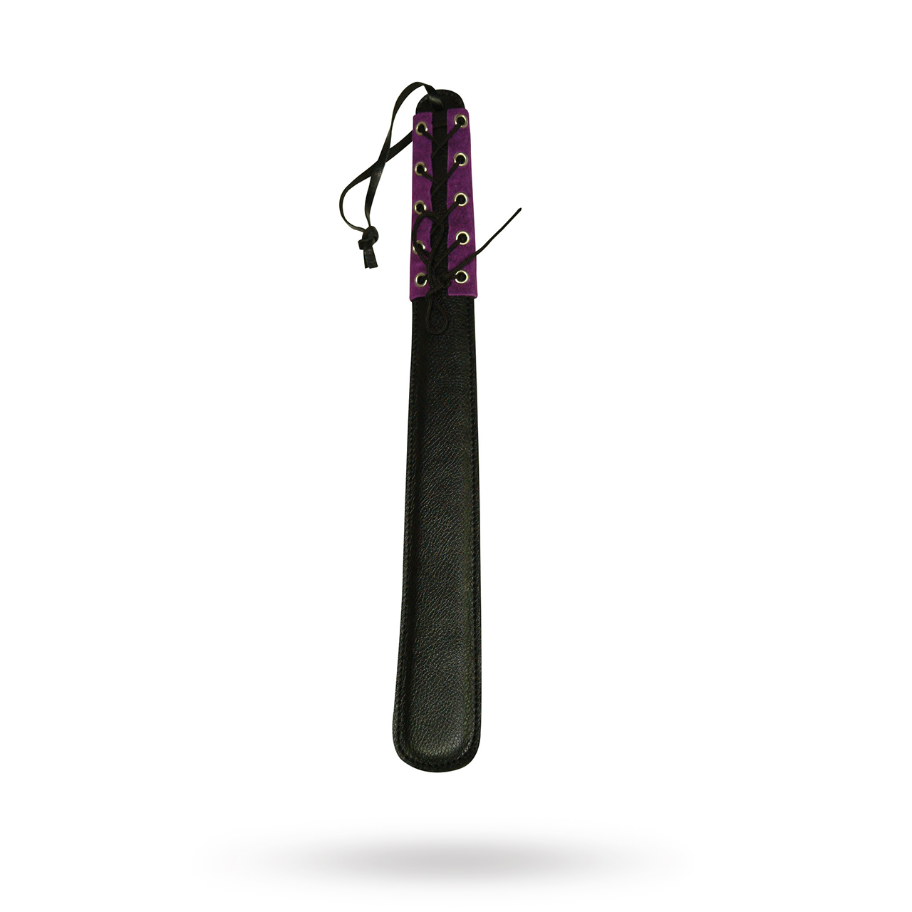 Svart paddel, handtag i lila mocka med elegant snörning.