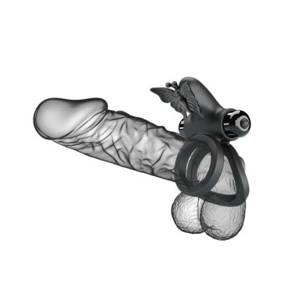 Passionate Ring IX with VibrationDenna penisring är designad med en kraftfull motor och mjukt silikon för optimal komfort. Den har två ringar: en som passar runt basen av penis och en annan för testiklarna. Samtidigt kommer en fjäril att vibrera i takt med motorerna, vilket ger härlig klitorisstimulering.Egenskaper:10 vibrationsfunktionersilikon + ABS1 AAA-batteri