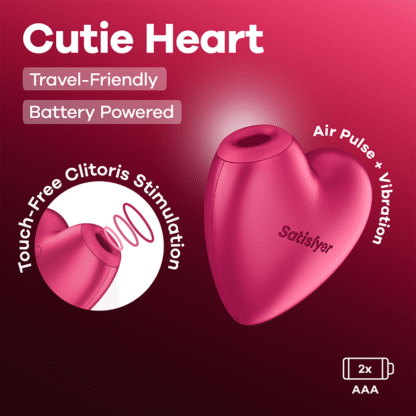 Satisfyer Cutie Heart har en lekfull hjärtform och en kompakt design som gör den perfekt att ta med på resan eller använda när du är på språng. Med två motorer kombinerar den Air Pulse-teknologi och vibrationer för effektiv stimulans av klitoris.